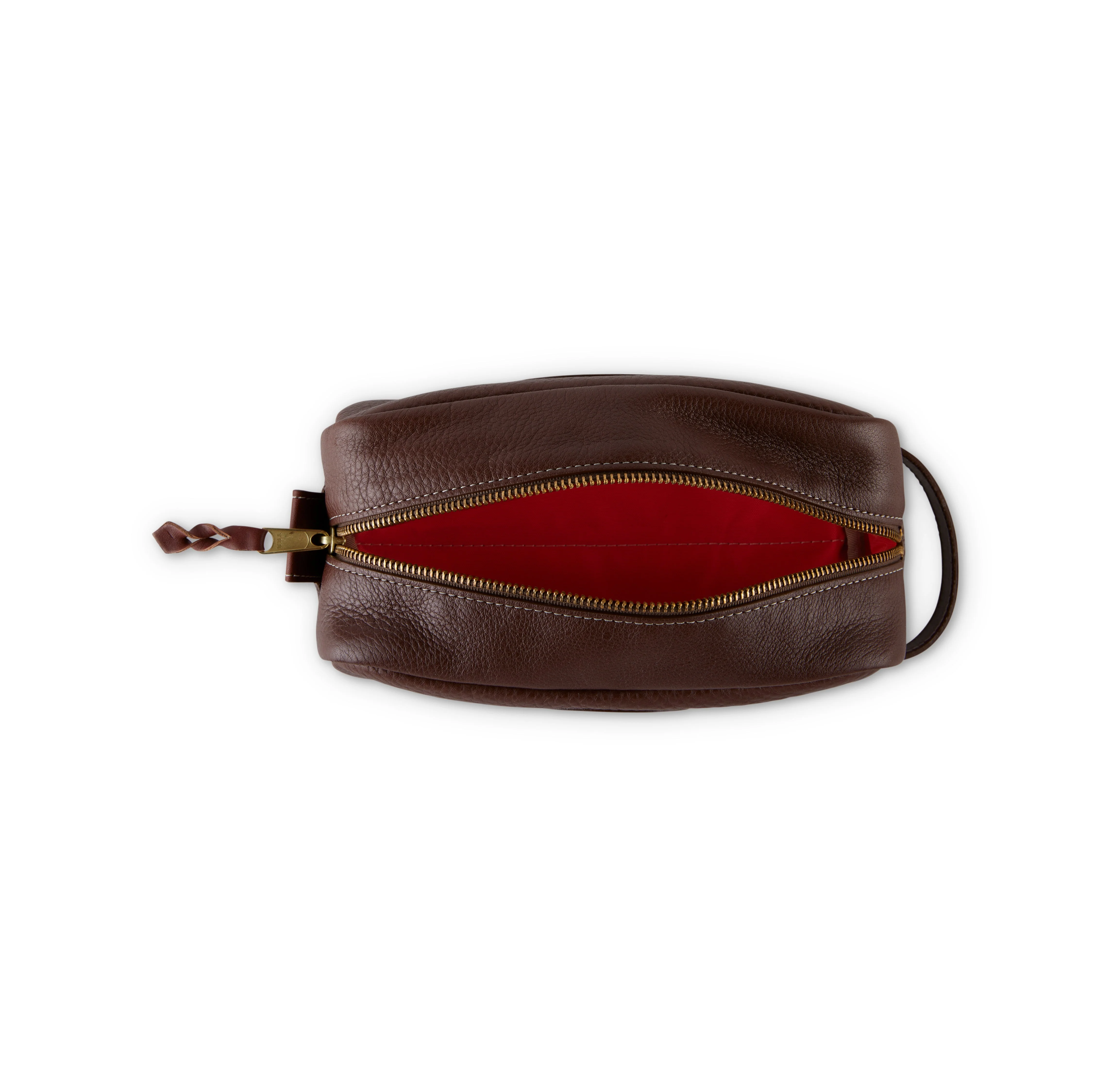 Built to last a lifetime, this dopp kit is crafted from the finest American Docil leather with a water-resistant liner. The liner’s striking shade of orange makes your essentials easier to spot. The Chaparral color is inspired by the rich russet brown of our beloved Santa Gertrudis cattle and is exclusive to King Ranch. We brought our trademark attention to detail to the trusted travel staple of every cowboy. Whether you're heading out on a cattle drive or traveling for a business trip, this versatile kit ensures your essentials are well-organized and protected.