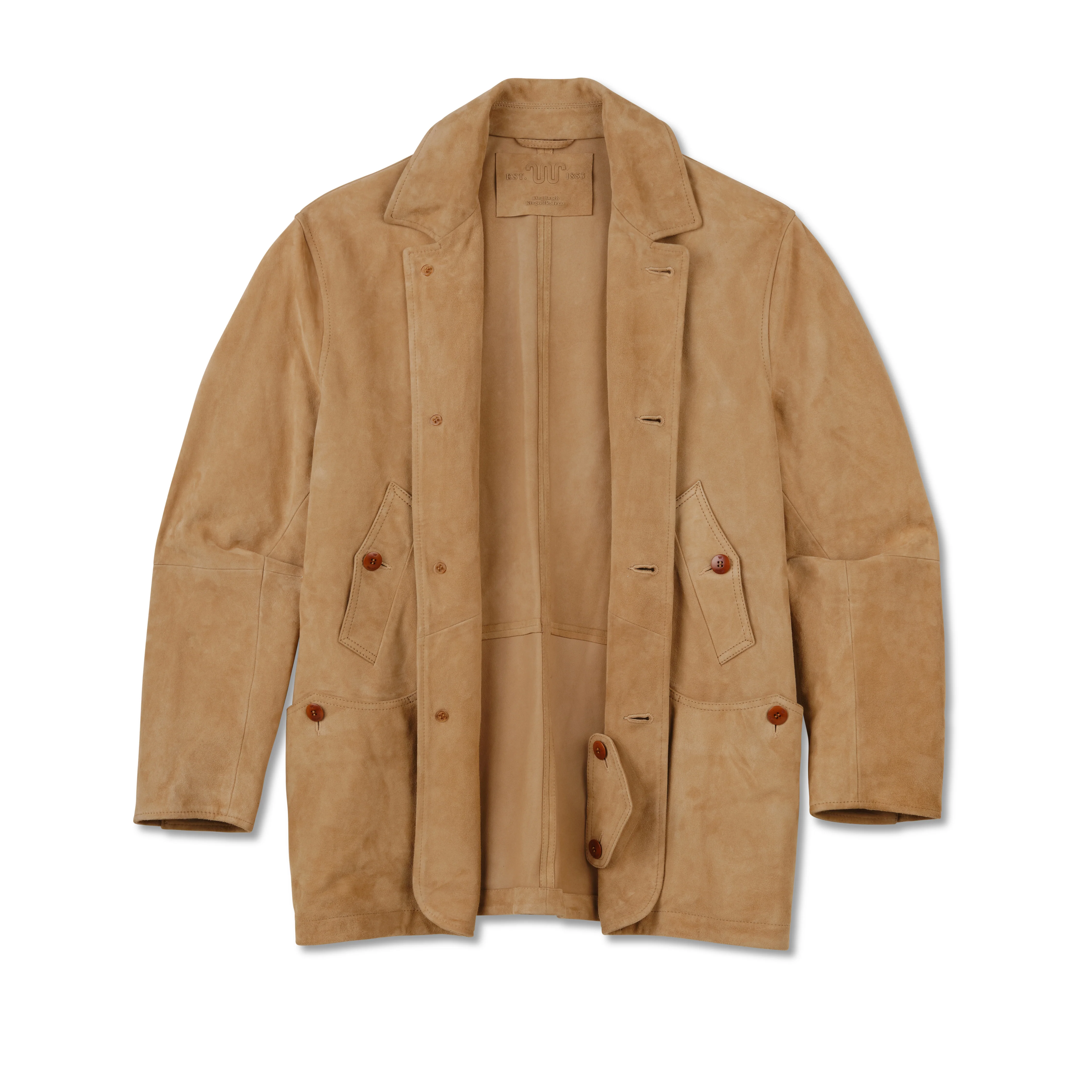 This coat is for the sportsman rough on his clothes yet refined when he’s off the Ranch. Crafted in incredibly lightweight goat suede, it's stronger than cowhide while also being softer to the touch. Rather than a tag inside the collar, we debossed the King Ranch logo for ultimate comfort and subtle sophistication. The durable buttons are made from the seeds of the Tagua palm, known as Corozo or vegetable ivory for its striking resemblance to ivory. Essential yet elevated, it’s designed to stand the test of time.