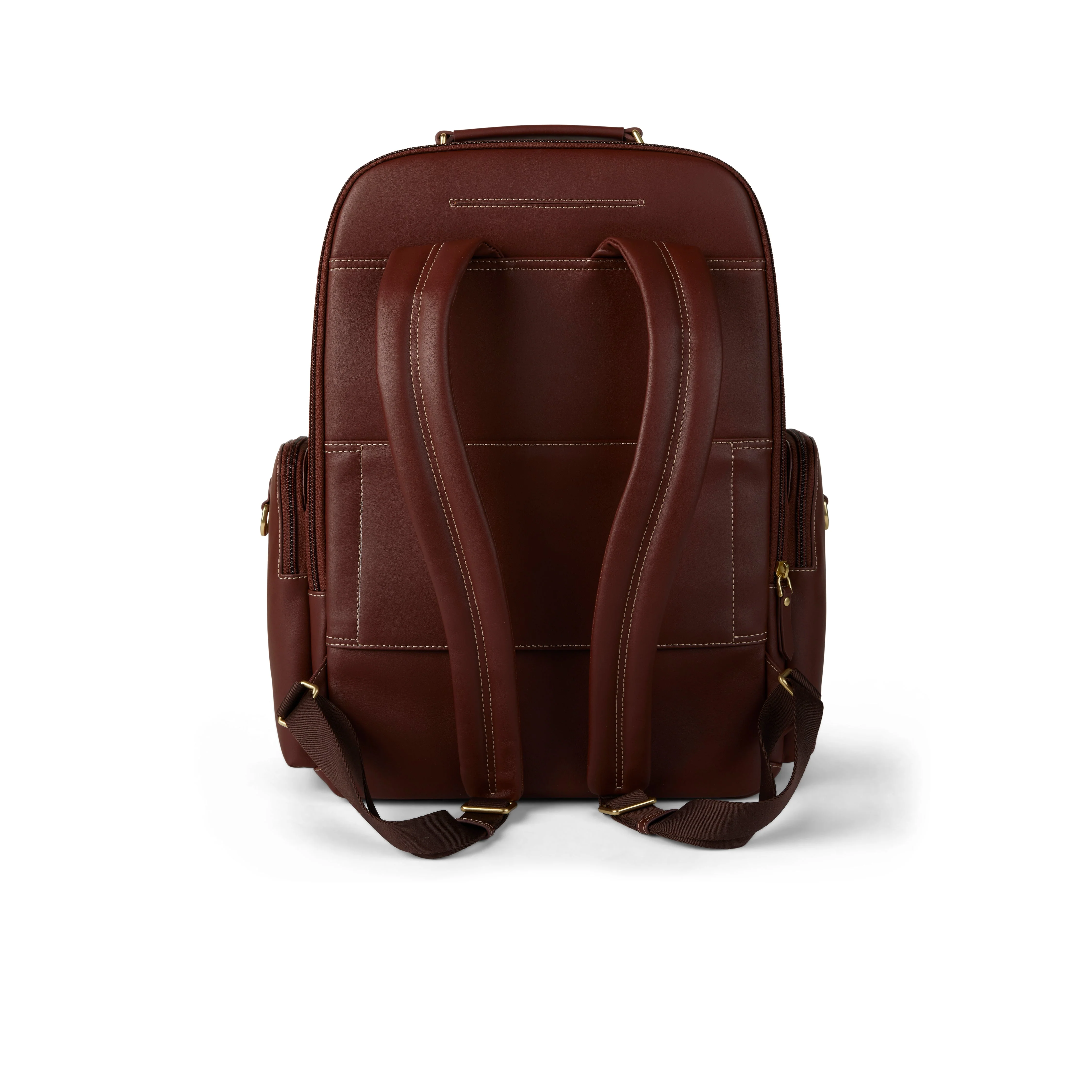 Crafted from naturally strong Latigo leather, this backpack rounds out our bestselling Justus collection. Handmade and built to last, it can stand the test of daily travel this generation and the next. It is your perfect travel companion, featuring a separate padded laptop compartment and a trolley sleeve to slide onto your suitcase or carry on. The large main compartment offers six pockets for optimal organization, while a secure and hidden cell phone pocket at the back adds an extra layer of security. The front zip compartment includes a key ring, pen slot, and card holder for easy access to essentials. Additionally, the two side zip pockets provide secret storage, perfect for fitting a water bottle or small travel tumbler. Designed for the adventurous traveler, this backpack ensures you travel in style and comfort.