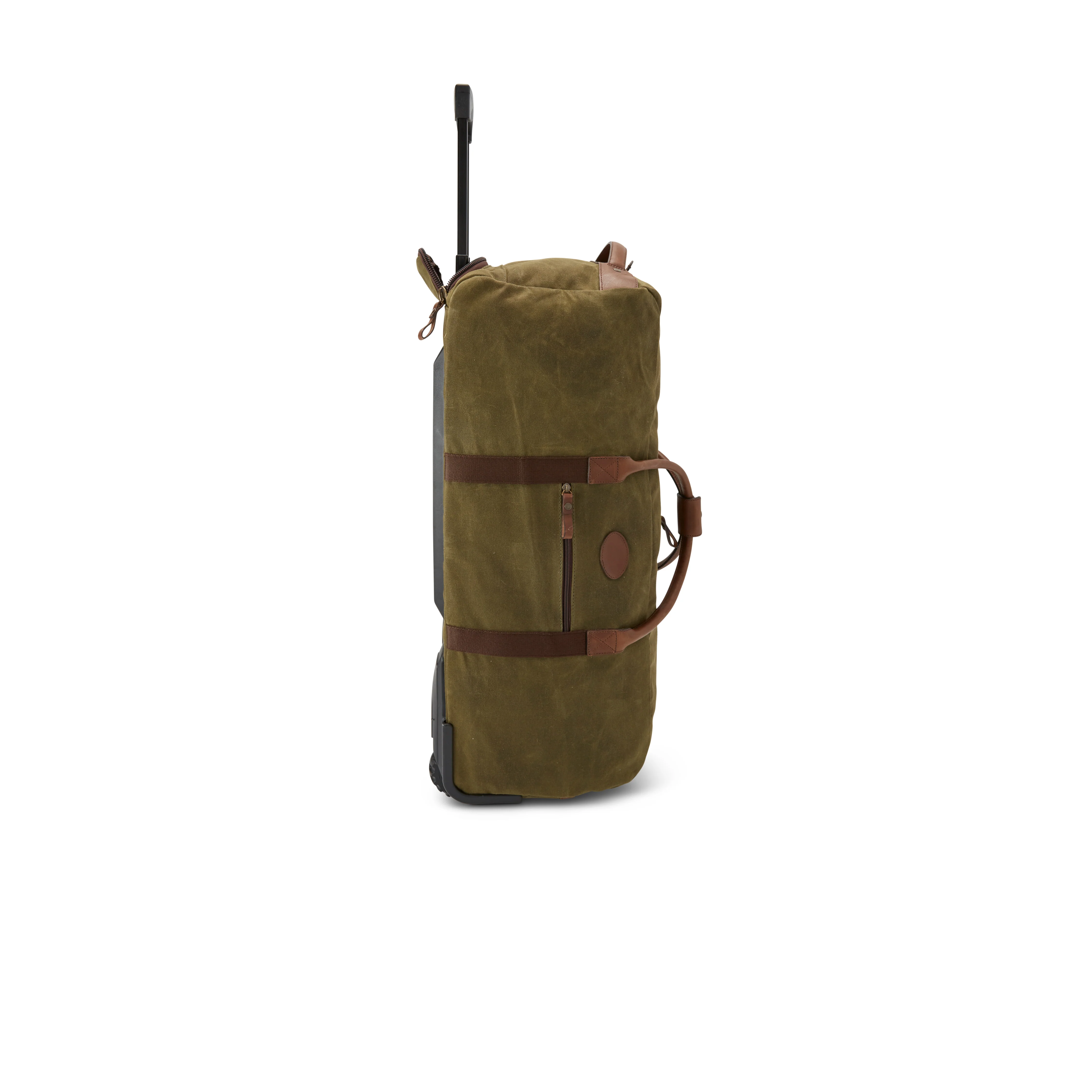 Designed for the modern adventurer, this duffle bag is built to carry your gear and withstand the rigors of travel while maintaining a polished look. Crafted from rugged waxed canvas, it features two outside zippered quilted pockets for easy access to your essentials and a spacious main compartment for all your travel needs. Whether you are heading out for a weekend getaway or a lengthy excursion, this duffle bag ensures you have everything you need, organized, secure, and within reach. The unique functional divider is perfect for your dopp kit, keeping your toiletries separate and easy to find. Lightweight and versatile, it is ideal for any journey, embodying the spirit of King Ranch's commitment to quality and craftsmanship.